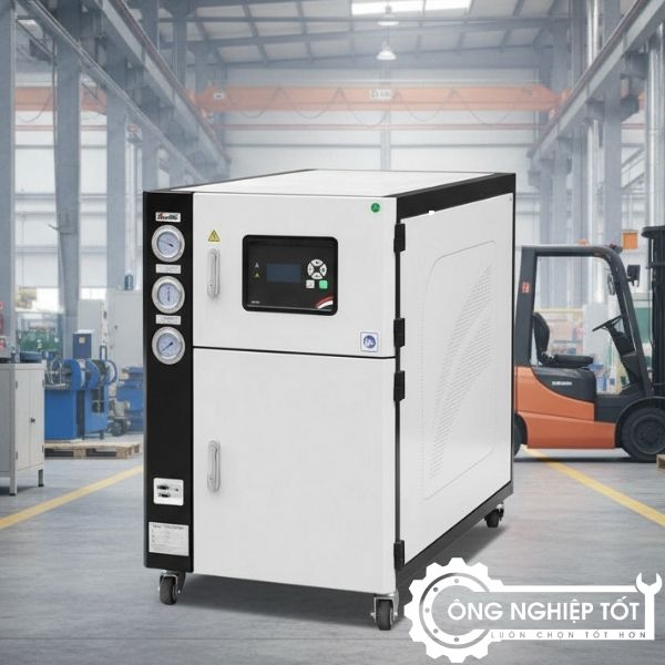 Nhờ quy trình này, nước lạnh được tạo ra liên tục và được dẫn đến các thiết bị hoặc khuôn máy cần làm mát. Toàn bộ hệ thống được thiết kế khép kín, đảm bảo an toàn, giảm hao phí năng lượng và hạn chế thất thoát nhiệt.