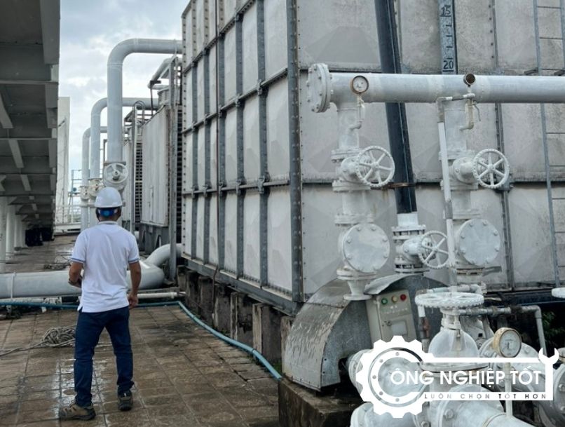 Kỹ sư Công Nghiệp Tốt đang kiểm tra, bảo trì tháp giải nhiệt
