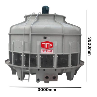 - Kích thước tháp giải nhiệt: Ø3000mm * 3900mm (D*H)