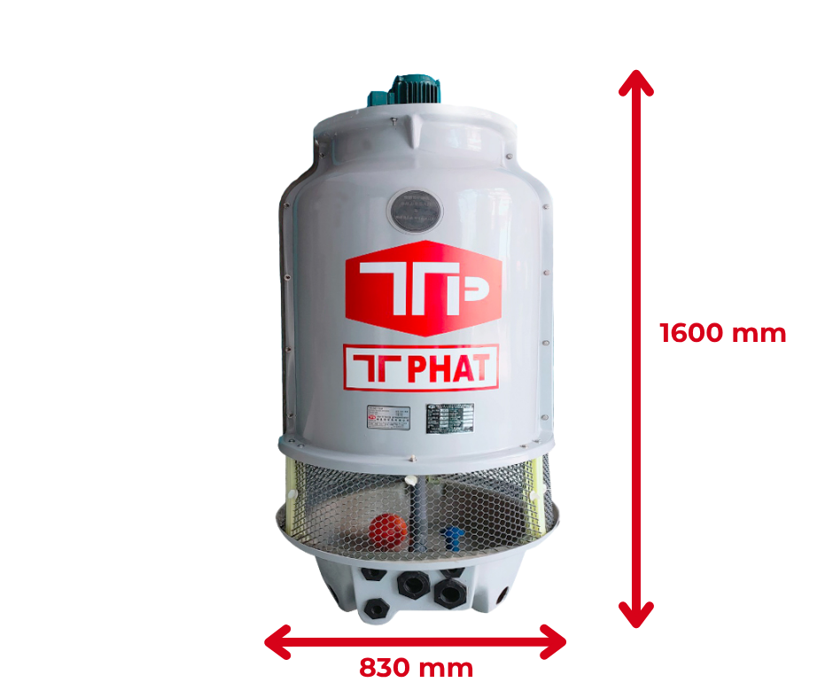 - Kích thước tháp giải nhiệt: Ø830mm * 1600mm (D*H)